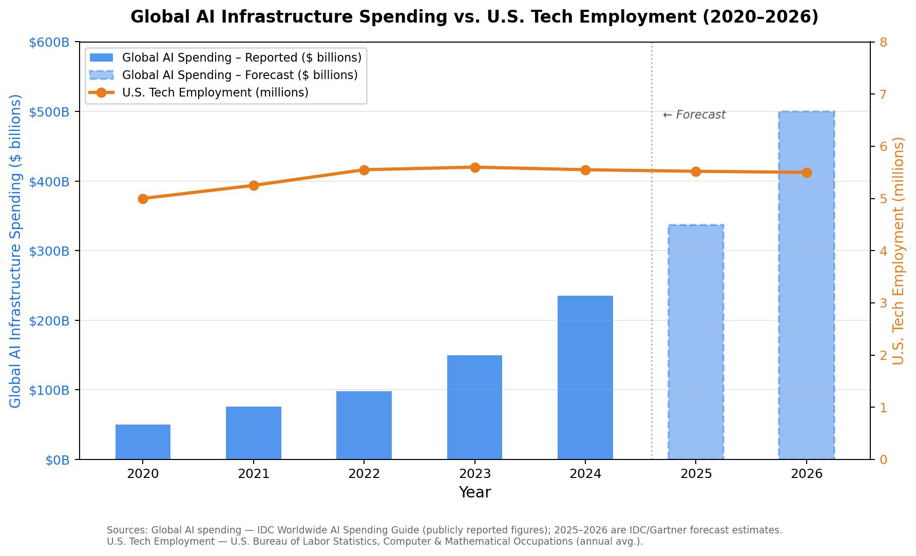 Chart: AI Infrastructure Investment vs Tech Employment